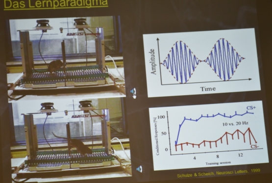 Ein wichtiger Faktor für das Abspeichern neuer Informationen, sei der Spaß am Fach, welches man gerade hat. Das fange schon bei den Lehrern und der Art ihrer Gestaltung des Unterrichts an, hier tat Herr Schulze selbst sein Bestes, indem sein Vortrag weder trocken noch zäh gestaltet war. Durch eine klare Strukturierung und zahlreichen Beispielen, sowohl visuell, als auch akustisch, war es ein Leichtes ihm zu folgen.