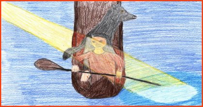 nach Hause und band ihn mit einem Lederband an eine Walfischrippe. Schon