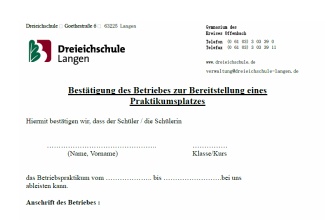 Bestätigung der Durchführung des Betriebspraktikums 2019 durch die DSL Klasse 8