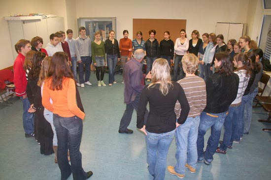 Veronika: He’s friendly but could also be strict. And he knows how to make people acting well. He corrected us but the whole workshop was on a high working level and not so easy. But the atmosphere was friendly all the time.