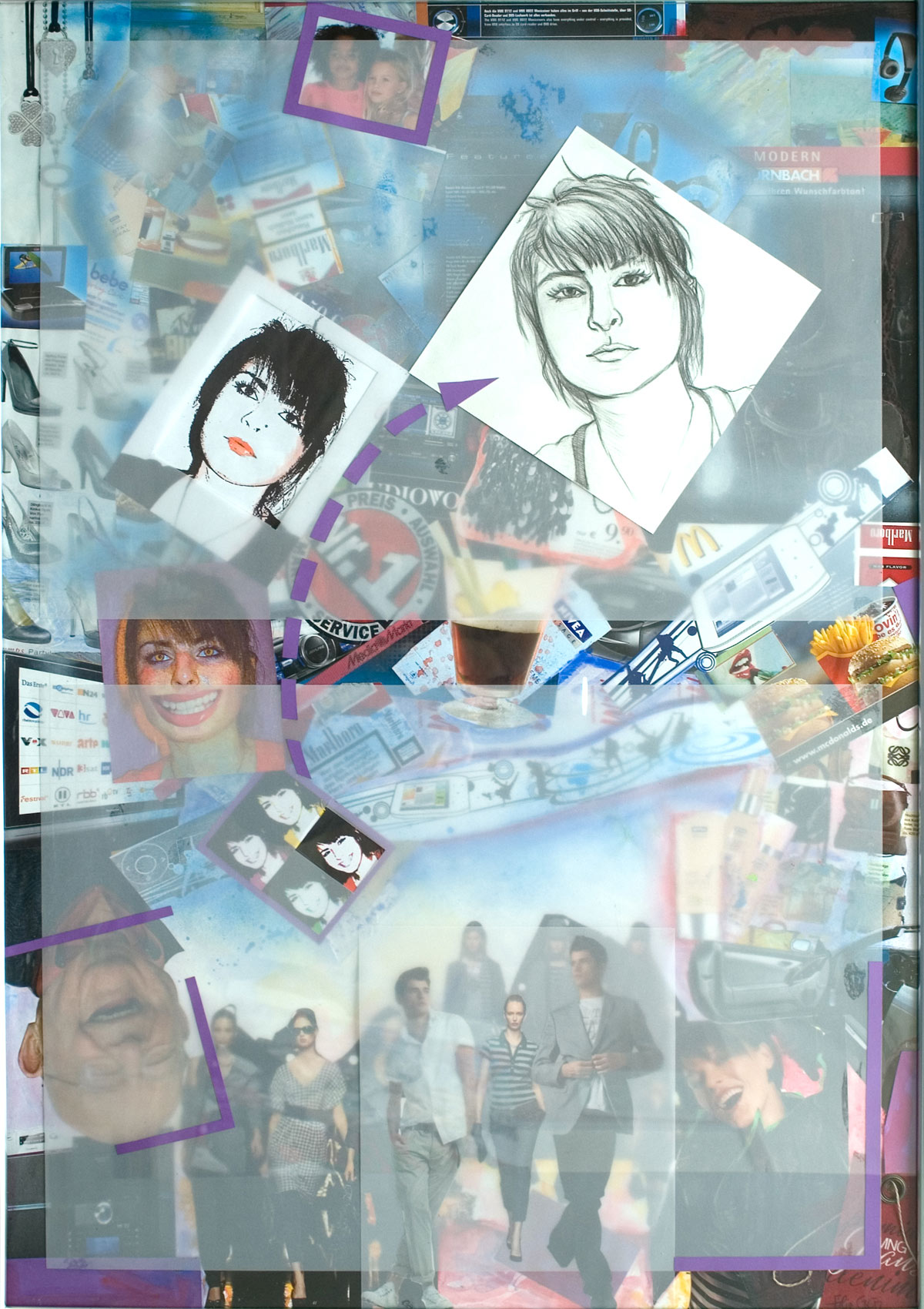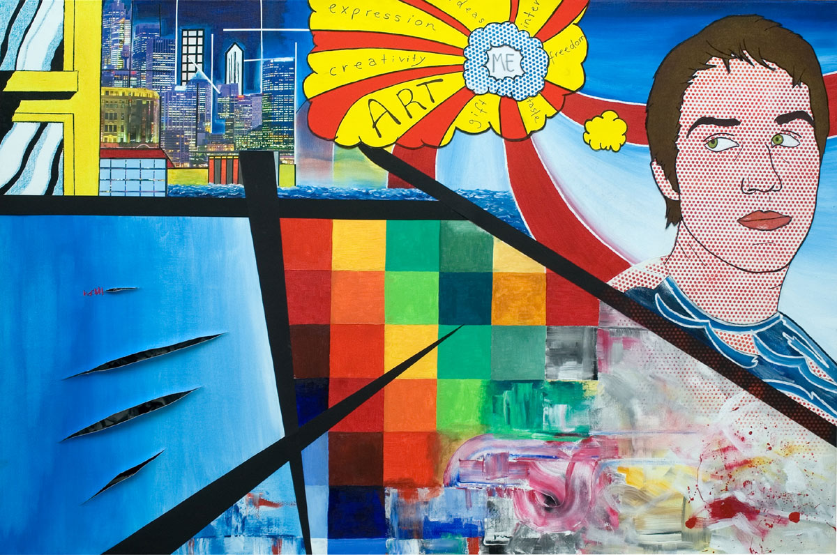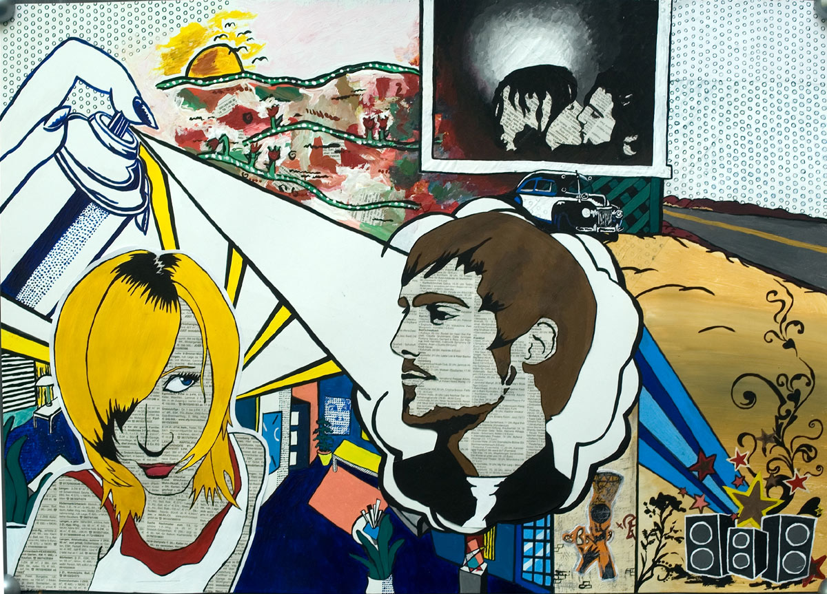 Unsere Abschlussarbeit bezog sich auf die verschiedenen Kunstepochen nach 1945 und hatte als Hauptthema „Ich - in Beziehung zur Kunst“. Die Aufgabenstellung war relativ offen, sodass wir uns selber Gedanken machen konnten, wie wir uns und die Epochen in Beziehung setzen.