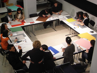| Schüler des Grund- und Leistungskurses im Architekturmuseum Frankfurt |