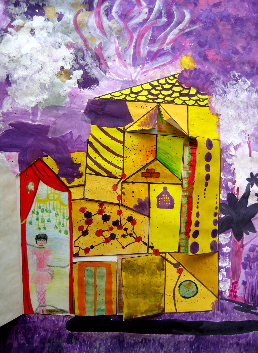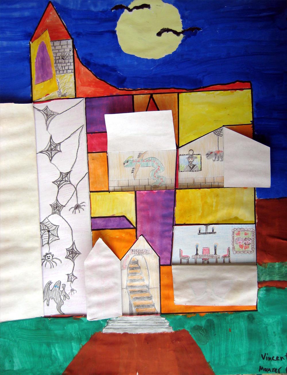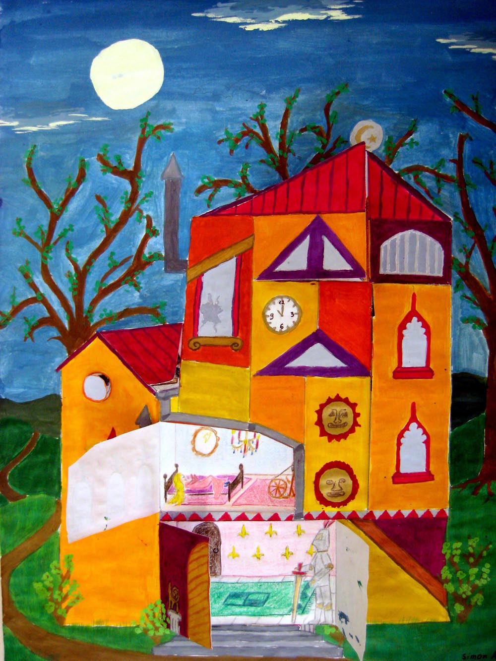 Die Fassade lag als Schwarzweißkopie vor, so dass Außenleben und Innenleben identisch auf den Zeichenblock übertragen werden konnten. Auch die Umgebung der Villa wurde nach eigenen Vorstellungen gestaltet. Jeder schrieb eine Geschichte zur Villa.