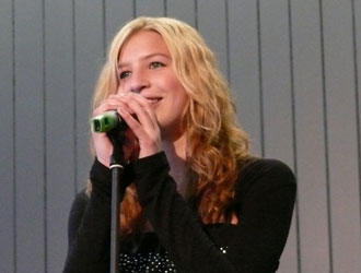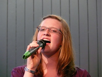 Ich singe schon seit längerer Zeit bei schulischen Konzerten mit und übe regelmäßig gemeinsam mit Herr Gunkel und der Band der Schule.