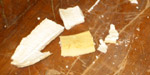 sie mit einem Hammer zerteilen musste.)