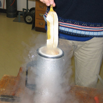 in flüssigen Stickstoff eingetaucht und tiefgefroren. |