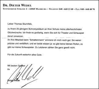 Dieter Wedel an Herrn Sturmfels wird verlesen |