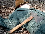 hatte, kam daher gelaufen mit einer Axt in der Hand. Damit streckte er