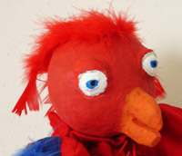 Eine halbe Stunde nahmen die Kindergartenkinder gebannt Anteil an den sieben kurzen Stücken, in denen sie auch selbst eine wichtige Rolle spielten, galt es doch, Superman um Hilfe zu rufen, den Bösewicht auszubuhen und warnend „Achtung“ zu rufen, wenn Pollymagus, der fiese Papagei (oben), den Troll von hinten überfallen will.