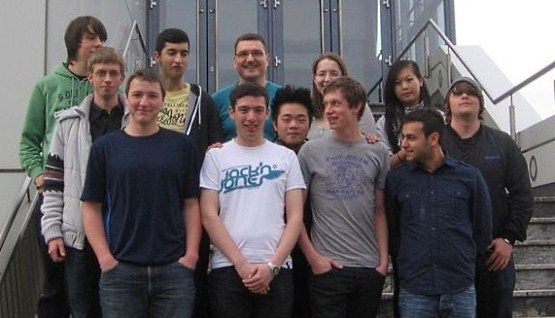 Der Mathe-LK von Herrn Semmler: Vladislav Gridin, Jens Nörtemann, Martin Bauer, Ertan Poplata, Herr Semmler, Florian Knaus, Thai Hoang (Gast aus dem M-LK-NIN), Ellen Bräuer, Michael Gille, Un-He Lee, Sandro Scaglione, Julian Klisch (v.l.n.r.)