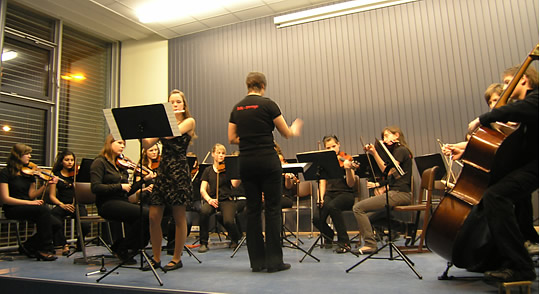 Lisa Ackermann (13Fre) und die DSL Strings unter der Leitung von Frauke Dennerlein