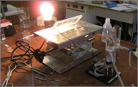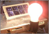 (Das Bild oben zeigt, wie eine Glühbirne vor einer Solarzelle steht.