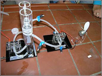 - Kabel und Propeller = Motor, der mit dem Strom der Brennstoffzelle